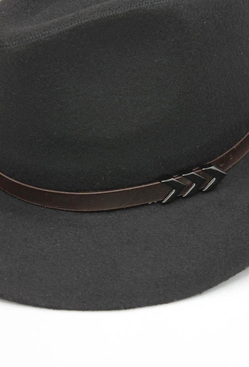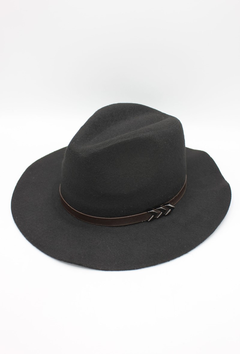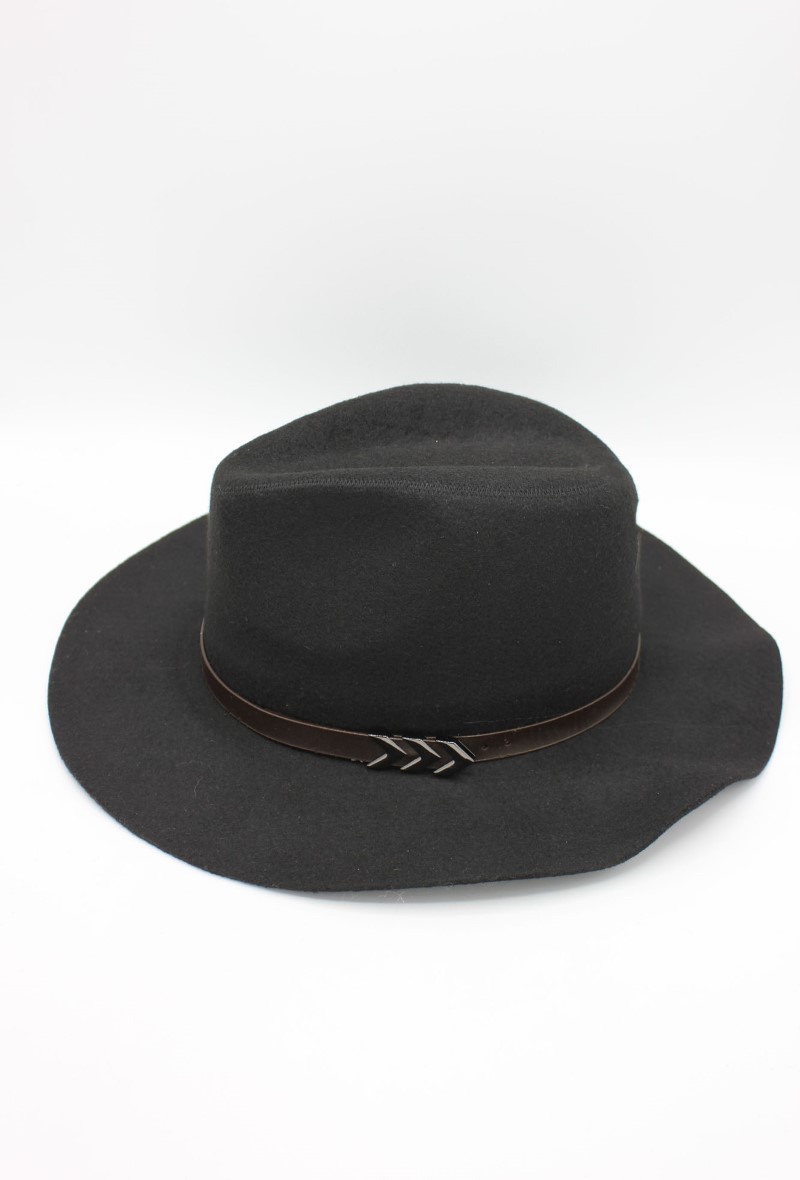 Klobouk s ozdobným lemem z koženky