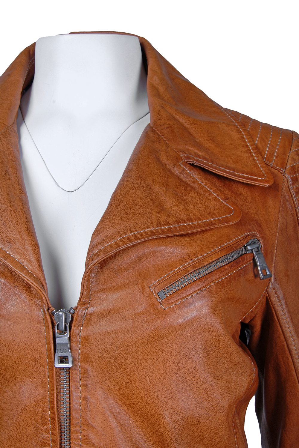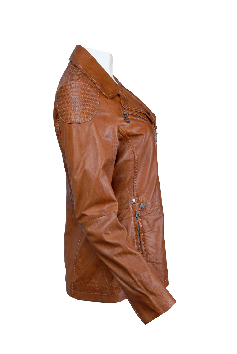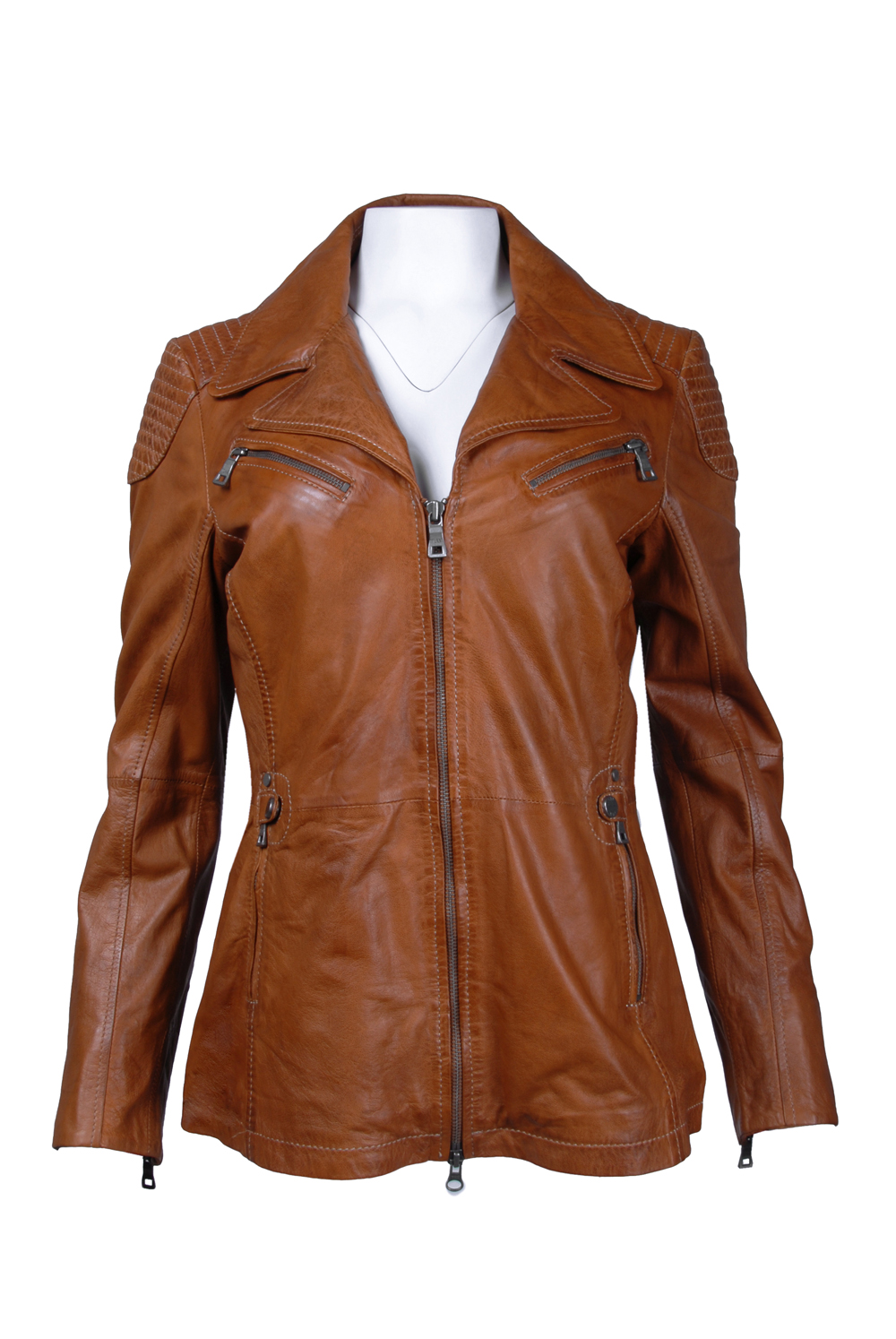 Rozměry:^vel. 36 - obvod hrudníku 92 cm, obvod pasu 82 cm, obvod boků 96 cm, délka 65 cm, délka rukávu 64 cm^Jedna vnitřní kapsička. Dvě vnější kapsičky na zip. Dvě boční kapsy na zip. Rukáv zdobený zipem.