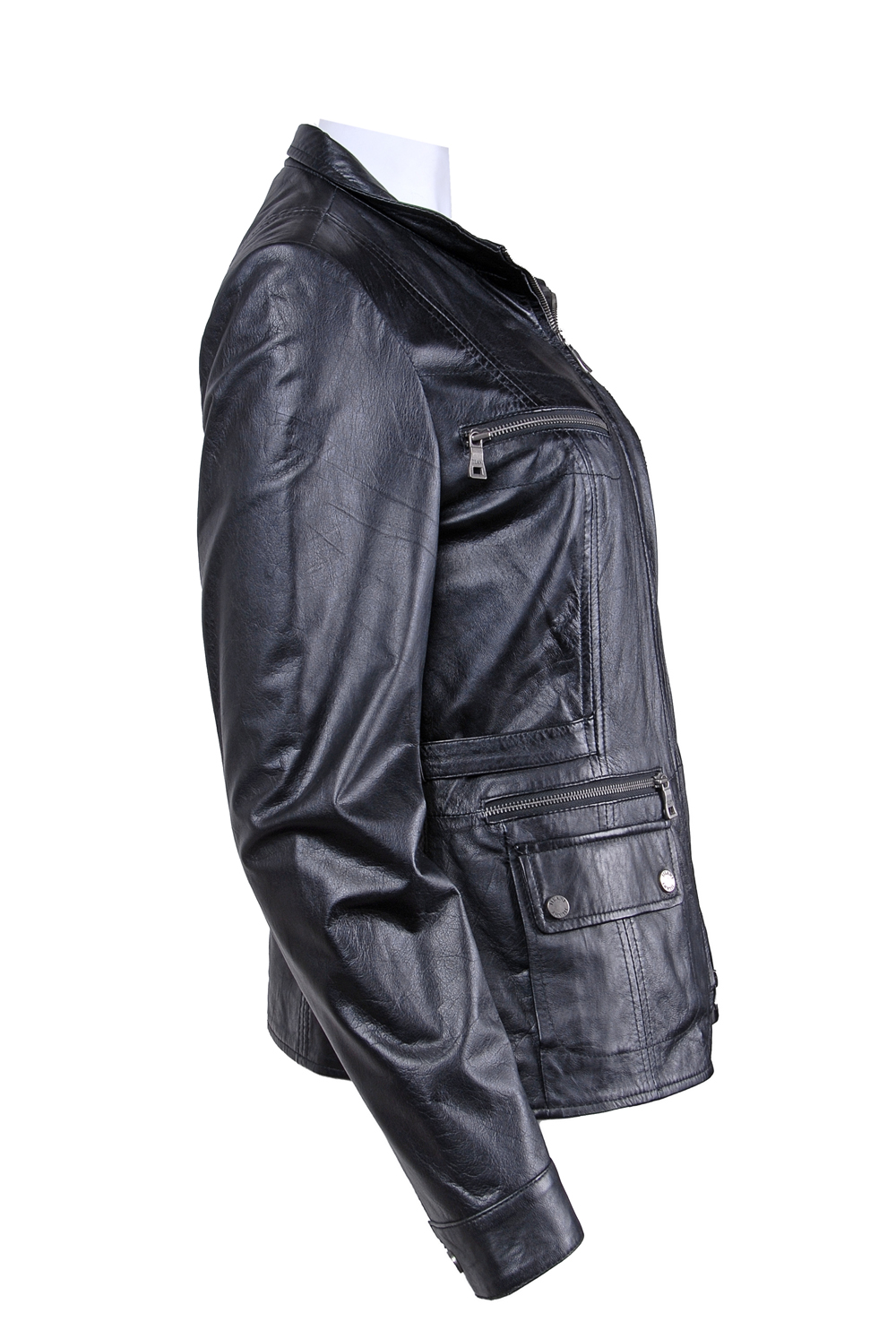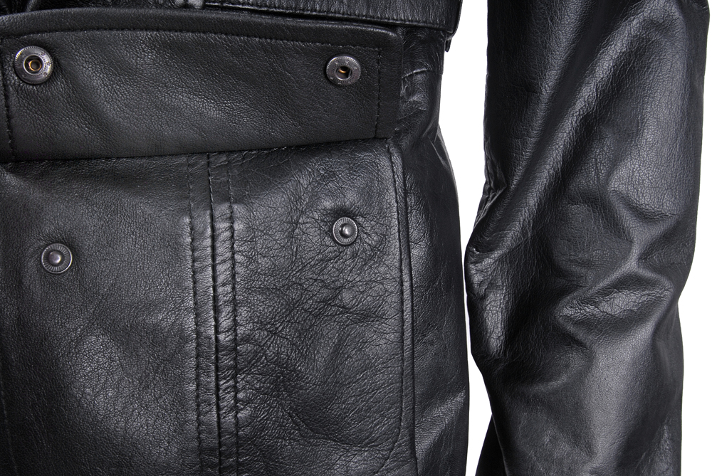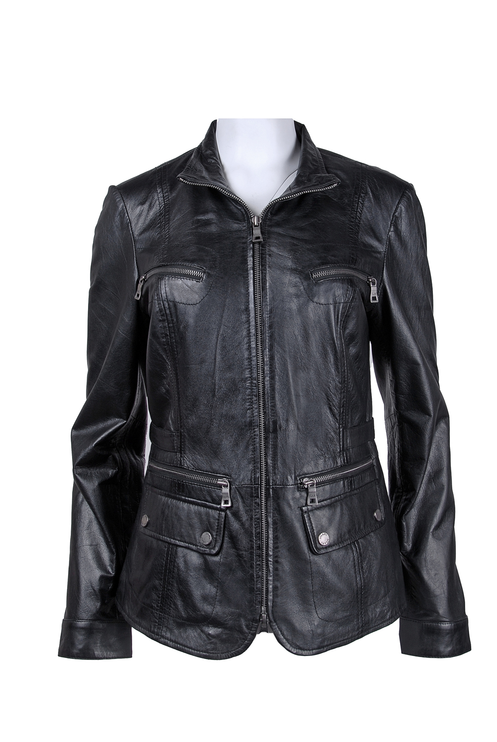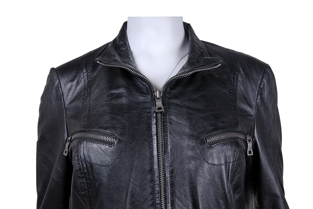 Rozměry:^vel. 36 - obvod hrudníku 90 cm, obvod pasu 82 cm, obvod boků 90 cm, délka - zadní díl 58 cm, přední díl 63 cm, délka rukávu 64 cm^vel. 38 - obvod hrudníku 92 cm, obvod pasu 84 cm, obvod boků 92 cm, délka - zadní díl 60 cm, přední díl 64 cm, délka rukávu 64 cm^vel. 40 - obvod hrudníku 100 cm, obvod pasu 90 cm, obvod boků 100 cm, délka - zadní díl 61 cm, přední díl 66 cm, délka rukávu 64 cm^vel. 42 - obvod hrudníku 104 cm, obvod pasu 92 cm, obvod boků 104 cm, délka - zadní díl 63 cm, přední díl 66 cm, délka rukávu 65 cm ^vel. 44 - obvod hrudníku 106 cm, obvod pasu 96 cm, obvod boků 106 cm, délka - zadní díl 63 cm, přední díl 68 cm, délka rukávu 65 cm^Jedna vnitřní kapsička. Čtyři kapsičky na zip - přední díl. Dvě falešné kapsy s patenty. Dvě boční kapsy. Velikost lze upravit patenty - zadní díl. Manžeta rukávu na patent.