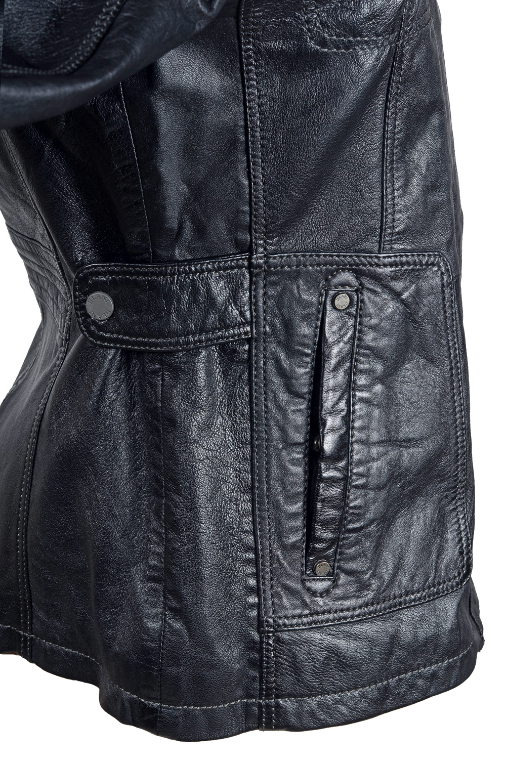 Rozměry:^vel. 38 - obvod hrudníku 92 cm, obvod pasu 80 cm, obvod boků 92 cm, délka 64 cm, délka rukávu 62 cm^vel. 42 - obvod hrudníku 106 cm, obvod pasu 94 cm, obvod boků 106 cm, délka 69 cm, délka rukávu 62 cm^vel. 44 - obvod hrudníku 110 cm, obvod pasu 98 cm, obvod boků 110 cm, délka 70 cm, délka rukávu 62 cm^Jedna vnitřní kapsička. Dvě vnější kapsičky na zip. Dvě boční kapsy na patent. Zapínání - zip, patenty. Velikost lze upravit patenty v pase - zadní díl. Patenty - manžeta rukávu, límec.