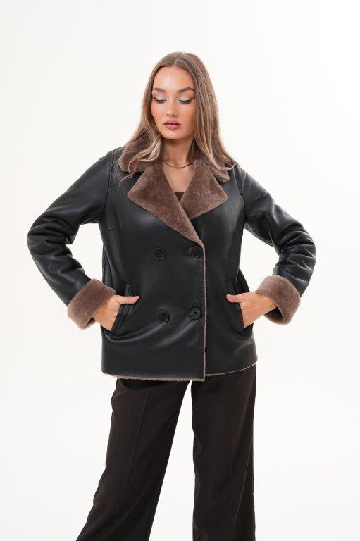 Kožený kratší kabátek s pravou kožešinou