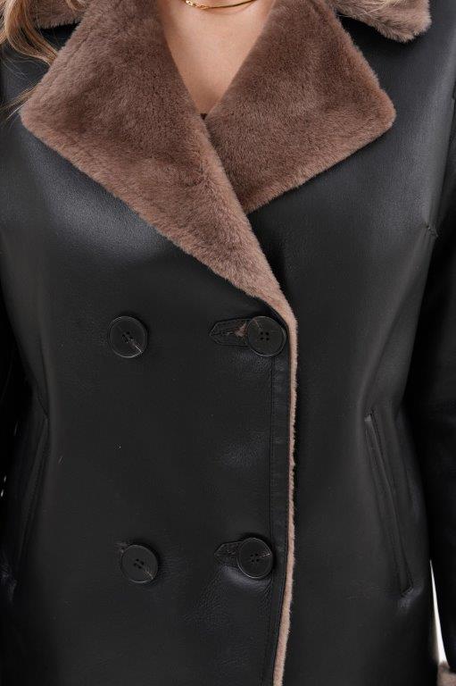 • nahlad Kožený kratší kabátek s pravou kožešinou