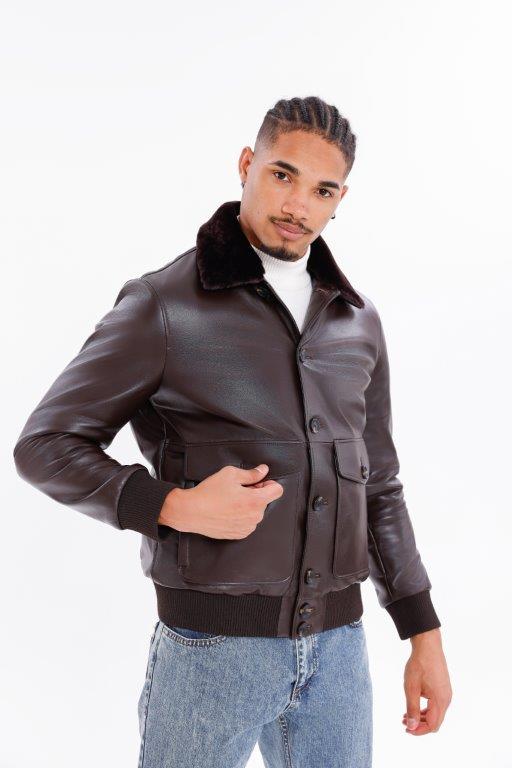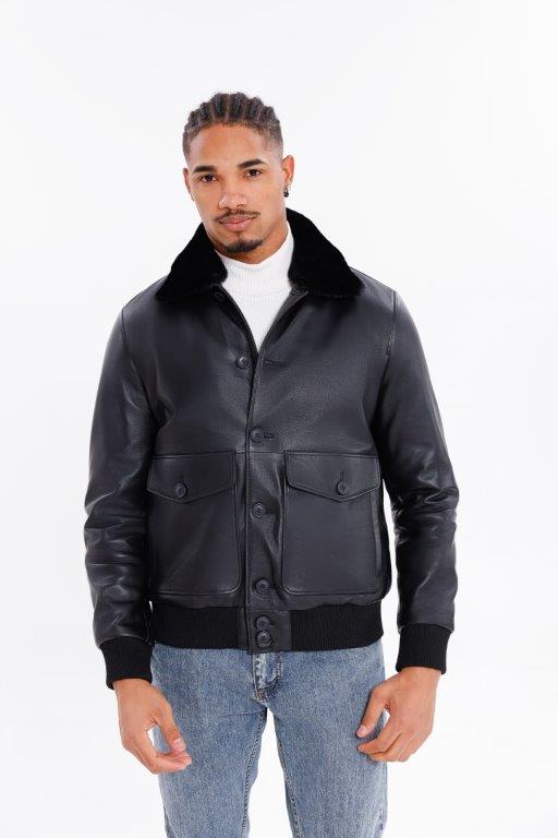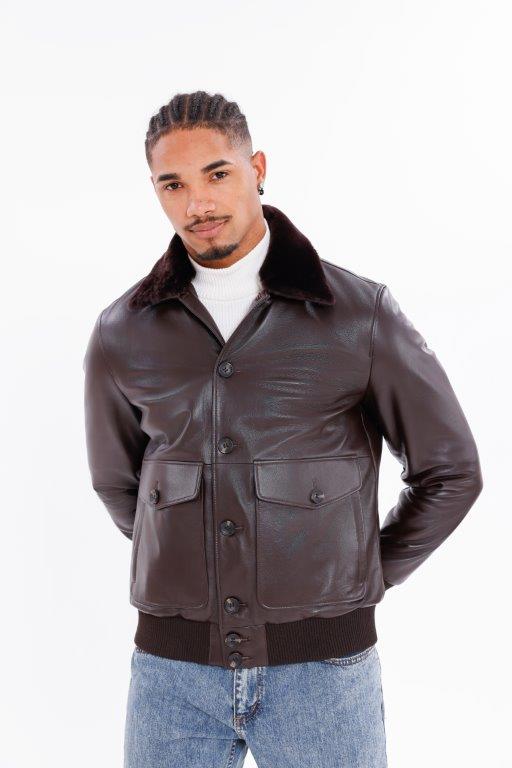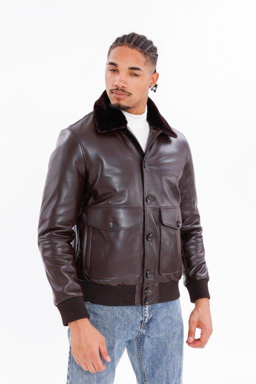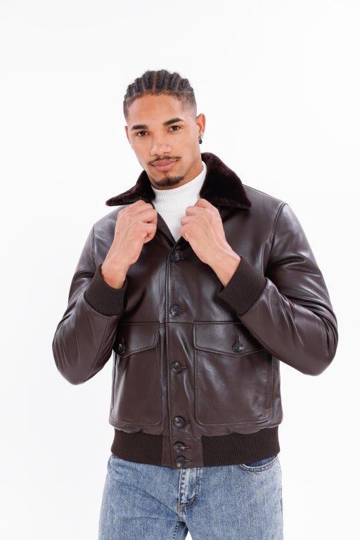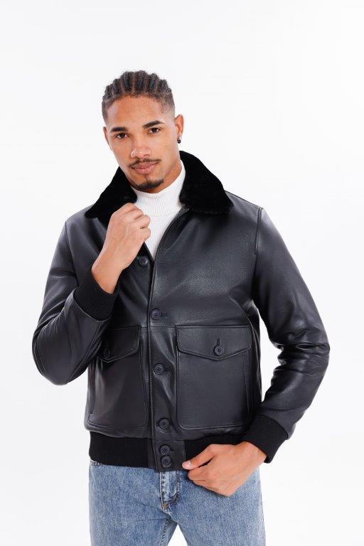 Kožený pánský bluson s pravou kožešinou
