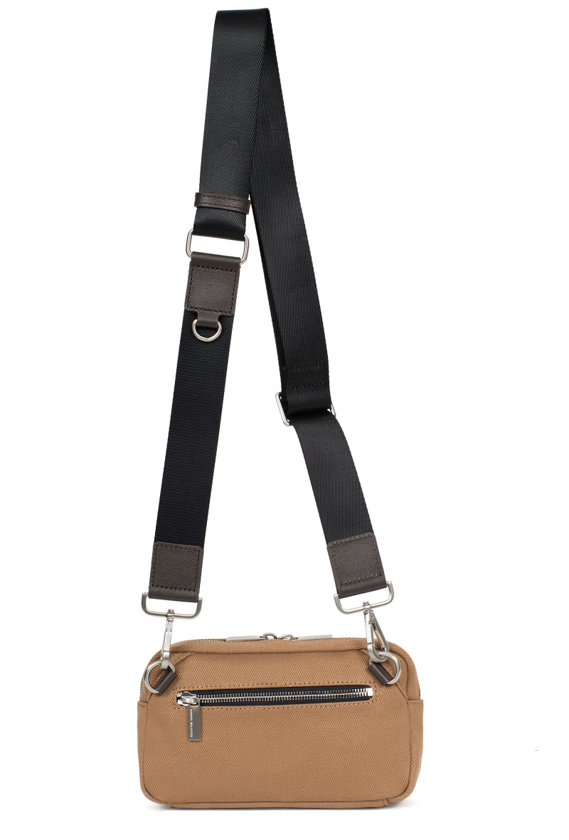 50% nylon, 20% polyester, 30% telecí hladká kůže. Textilní části ošetřujte nasucho kartáčkem nebo navlhčeným hadříkem. Na koženou část použijte výživný balzám na kůži.